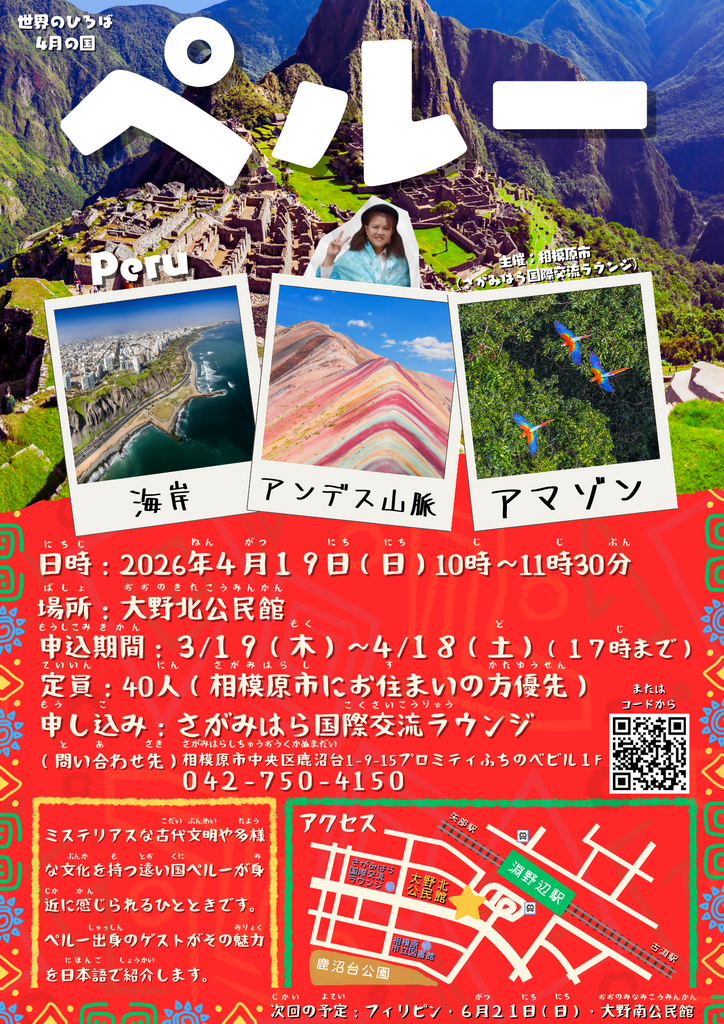 世界のひろば ~ペルー編~(2026/4/19 10:00am-11:30am)